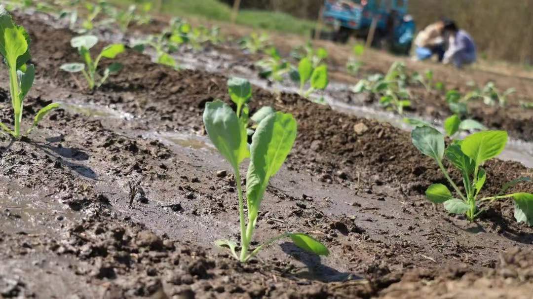 栽種好的菜苗,澆滿水啦~