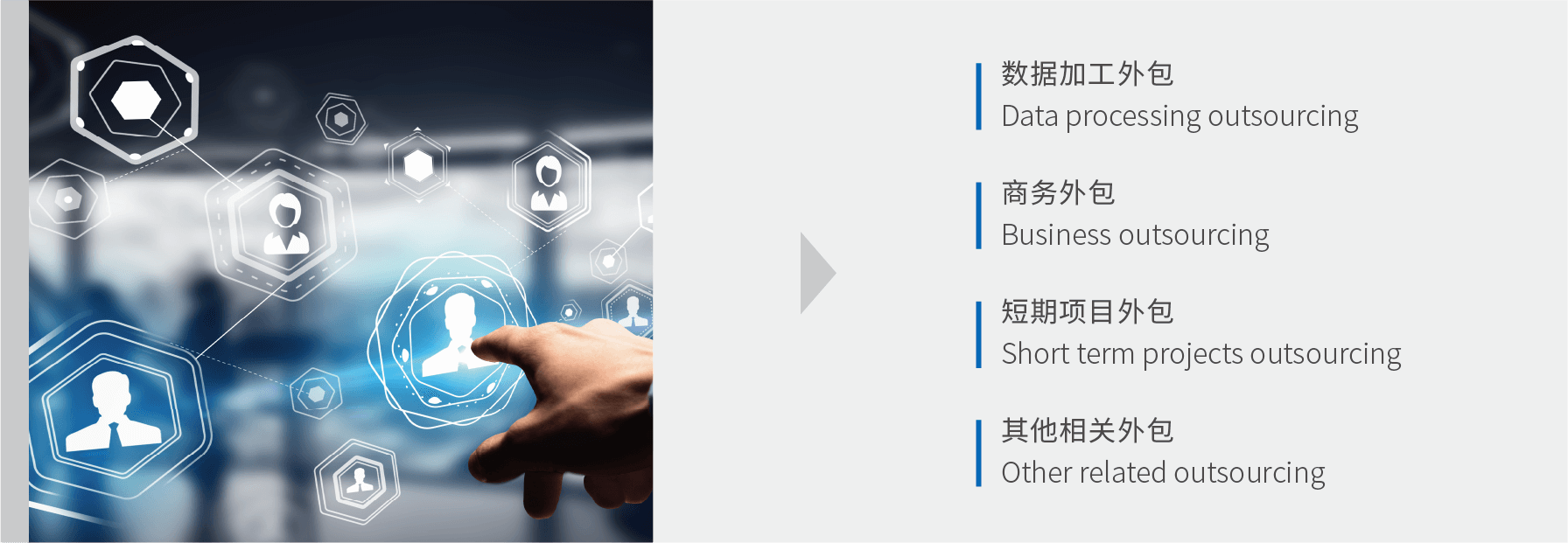 ◎ 專業化的外包服務團隊,通過業務流程標準化,協助企業降低運營成本,規避用工風險,全面提升工作效率